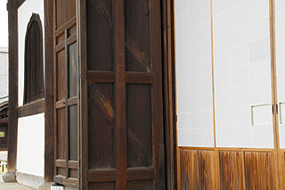 三門を抜けると階段(写真2)があり、その横に経蔵(写真3)があります。経蔵は改修中でした。