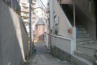 写真2と写真3も同じ路地の写真です。怪奇「光る通り魔」では、牧と野村がここで現場検証を行います。アパートと路地の階段は当時の様子を残していますが、その周辺の建物は建て替えられています。