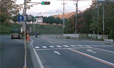 上の写真は蛇塚交差点から東京方面を見たところです。同エピソード10分56秒、トラックは写真奥から手前に走ってきました。ビデオ映像では写真奥のカーブの周りは山を削ったようになっていますが、写真ではすっかり平らになっています。しかし、周囲の道の曲がり具合、小田急線の踏切りとの位置関係、そして同じ市内の秦野市平沢交差点にあったドライブインが同エピソードのロケ地であることから、ここもロケ地だと思われます。