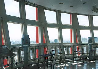 展望台内部と、そこからの眺めです。 左の写真はポートタワーの東側にある新港突堤、 そして右の写真はポートタワーの南側にある川崎重工です。 ウルトラセブン「ウルトラ警備隊西へ 後編」では、 ダンがここの展望台の双眼鏡でドロシーアンダーソンを探します。