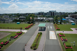 写真6は西門からみた本館です。ウルトラQ「虹の卵」冒頭の濃縮ウランを運ぶトラックが出発する場所です。